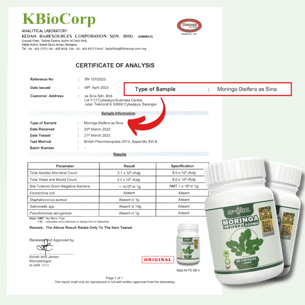 1 botol Moringa Oleifera as-Sina adalah untuk 30 hari pengunaan.
