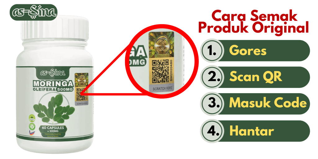 Moringa as Sina yang ORIGINAL ada hologram emas berbarcode di botol seperti di gambar