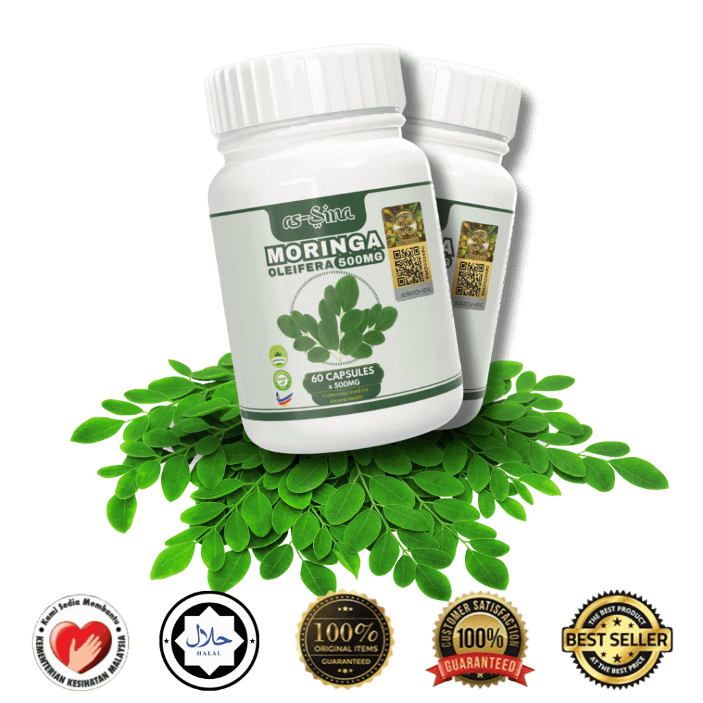 Kapsul Moringa as-Sina dikilangkan mengikut standard terbaik yang telah ditetapkan untuk menjaga kualiti dan khasiatnya. Kapsul Moringa as-Sina padat dengan Protein, Asid Amino penting, 27 jenis Vitamin, 46 jenis antioksidan, Bebas Gluten, Tinggi Serat, Folat, Fiber dan Phytonutrients. Ianya sangat baik dalam membantu merawat dan mencegah masalah 3 serangkai, sendi, gout dan masalah perut.