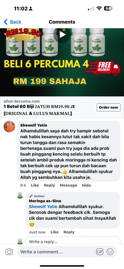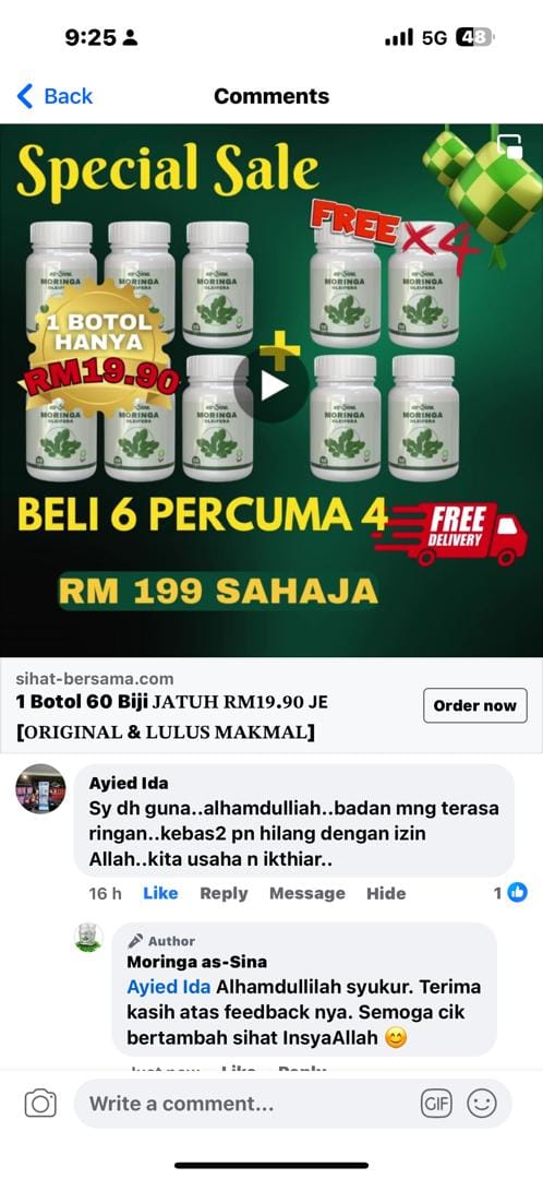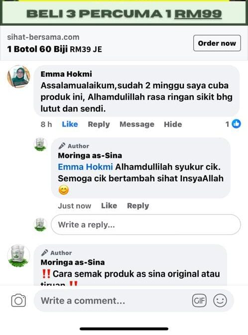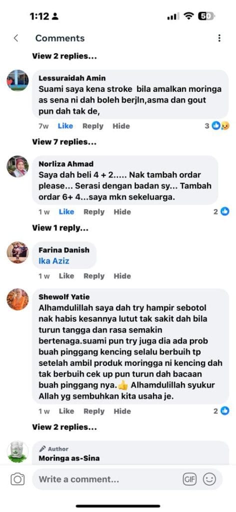 Anda dapat jaminan sekuat ini kerana Moringa Oleifera as-Sina sudah berjaya membantu ramai orang yang mempunyai masalah SAMA SEPERTI ANDA dan ia terbukti berkesan.